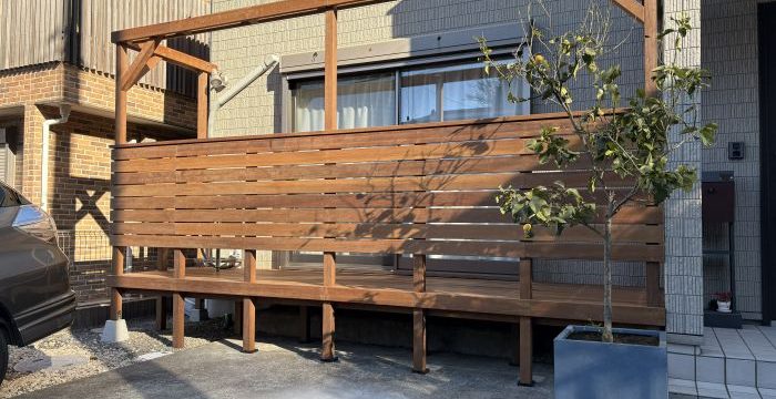 ウッドデッキ・ウッドフェンス・パーゴラ・植栽などを